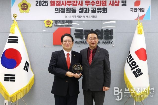 브릿지저널 김경미 기자 | 경기도의회 교육기획위원회 김현석 의원(국민의힘, 과천)이 24일 경기도의회 국민의힘으로부터 ‘2025년 행정사무감사 우수의원상’을 수상했다.