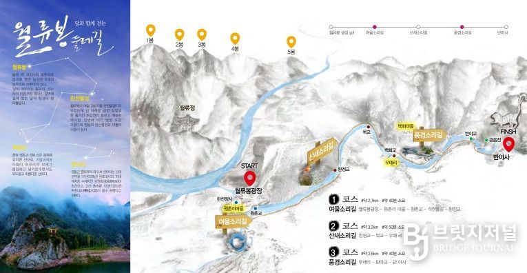 특히 코스 곳곳에 위치한 반야사, 한천팔경, 백화산 능선은 월류봉과 어우러진 자연미를 한눈에 감상할 수 있는 포인트다.