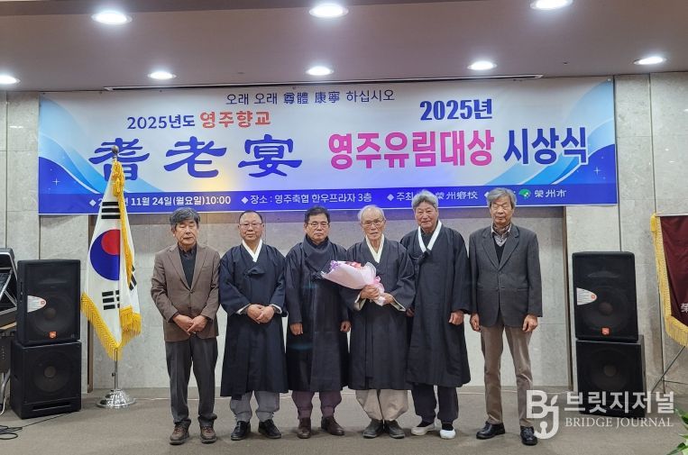 브릿지저널 정보영 기자 | 영주시는 지난 24일 영주축협한우프라자 3층 대강당에서 열린 ‘2025년 영주향교 기로연’와 함께 ‘2025년 제1회 영주 유림대상’ 시상식을 개최했다.