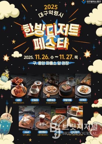 브릿지저널 김진석 기자 | 대구 중구는 오는 26일부터 27일까지 양일간 오전 11시부터 오후 3시까지 옛 중앙파출소 앞 광장에서 ‘대구약령시 한방디저트 페스타’를 개최한다고 밝혔다.
