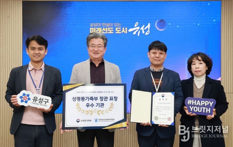 브릿지저널 정보영 기자 | 대전 유성구는 유성구 학교밖청소년지원센터(센터장 한형기)가 성평등가족부 주관 ‘2025년 학교밖청소년지원사업 보고 대회’에서 종합 평가 ‘우수 기관 장관상’을 받았다고 24일 밝혔다.