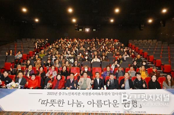 브릿지저널 윤나영 기자 | 울산 중구노인복지관이 11월 25일 오후 2시 메가박스 울산점에서 ‘2025년 자원봉사자·후원자 감사의 날’ 행사를 열었다.