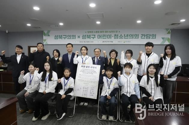 브릿지저널 김경미 기자 | 서울 성북구가 지난 22일 성북구의회에서 어린이·청소년의회 의원, 대학생 보좌관과 함께 ‘어린이·청소년 의견 실행·소통의 장’ 간담회를 진행했다.
