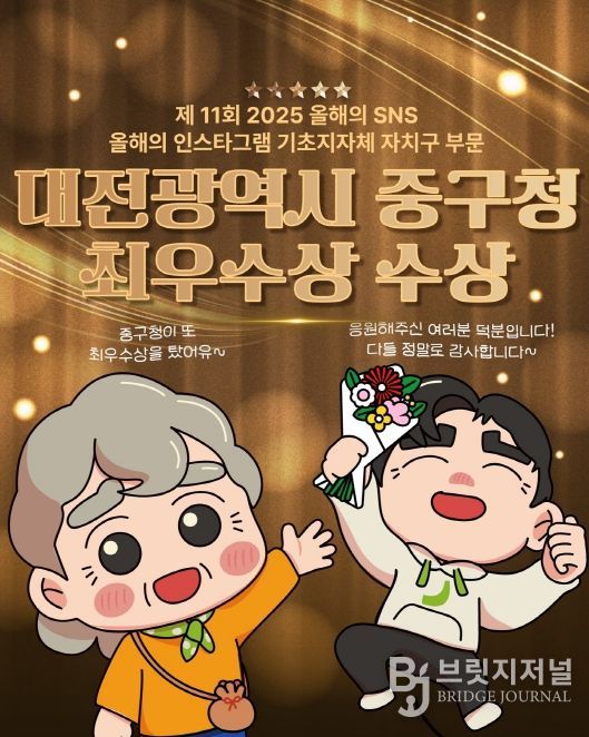 브릿지저널 정보영 기자 | 대전 중구는 26일 한국프레스센터에서 열린 ‘올해의 SNS’시상식에서 기초지자체(자치구) 인스타그램 부문 최우수상을 수상했다고 밝혔다.