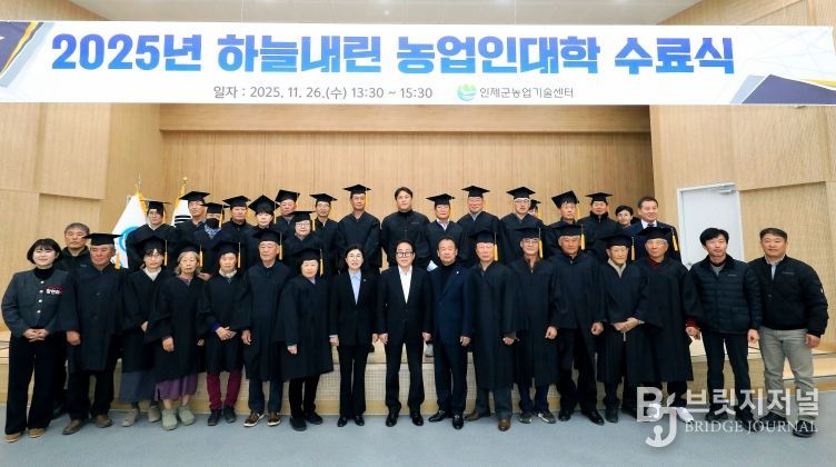 브릿지저널 윤나영 기자 | 인제군은 지난 26일 오후 1시 30분, 인제군농업기술센터 대교육장에서 ‘2025년 하늘내린농업인대학 수료식’을 개최했다.