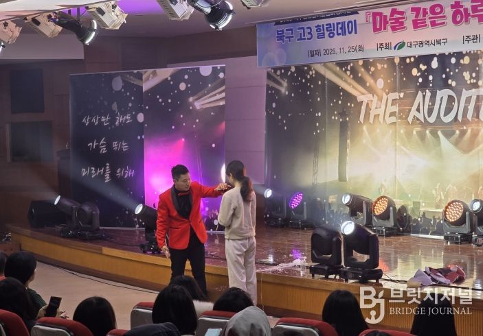 브릿지저널 김진석 기자 | 대구북구청소년회관에서는 11월 25일 영진전문대학교 국제세미나실에서 고3 수험생 등 500여 명이 참석한 가운데 '고3 힐링데이 - GO3 리프레쉬 타임 – 마술 같은 하루! 뮤지컬 같은 미래!'행사를 개최했다.