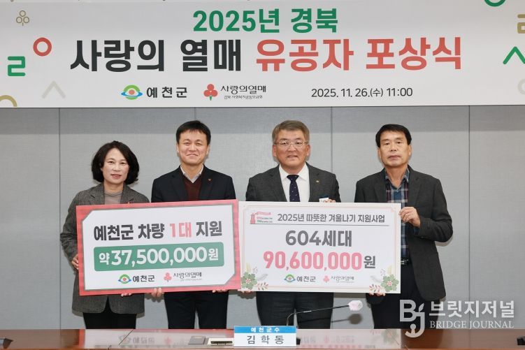 브릿지저널 정보영 기자 | 예천군은 26일 오전, 경북사회복지공동모금회(회장 전우헌)가 주최하는 ‘2025 경상북도 찾아가는 이웃돕기 유공자 포상식’이 예천군청에서 열렸다고 밝혔다.