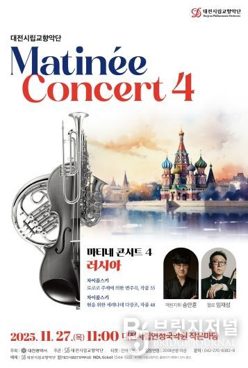 브릿지저널 정보영 기자 | 대전시립교향악단은 27일 목요일 오전 11시, 대전시립연정국악원 작은마당에서 2025년 마지막 마티네 콘서트 ‘러시아’를 선보인다.