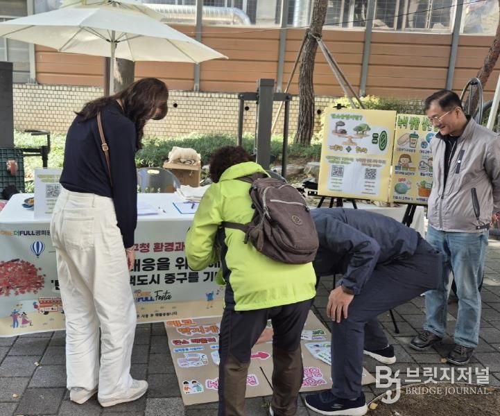 브릿지저널 김경미 기자 | 서울 중구가 지난 4월부터 약 7개월간 진행한‘삼삼오오 기후 챌린지’를 성공적으로 마무리했다. 이번 챌린지를 통해 100여 명의 주민이 환경교육에, 200여 명이 일상 속 녹색생활 실천에 참여하며 지역사회 탄소중립 문화 확산의 기반을 다졌다는 평가다.