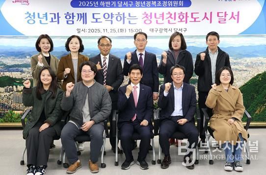 브릿지저널 김진석 기자 | 대구 달서구는 지난 25일 구청에서 ‘2025년 하반기 달서구 청년정책조정위원회’ 정기회의를 개최하고 2025년 청년정책 추진성과와 2026년 신규 청년지원사업 방향에 대해 자문을 받았다.
