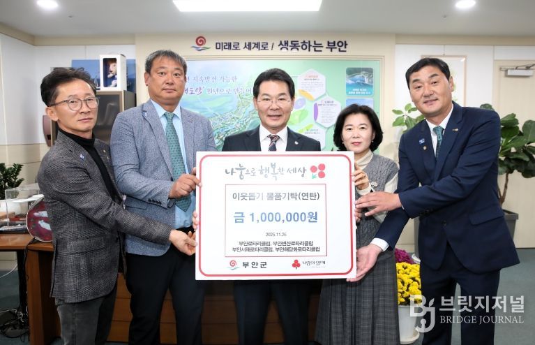 브릿지저널 윤나영 기자 | 부안군 4개소 로타리클럽(부안로타리클럽 회장 윤지훈, 부안변산로타리클럽 회장 김정환, 부안서해로타리클럽 회장 신철용, 부안해당화로타리클럽 회장 김미화)은 지난 26일 취약계층 아동을 위해 이웃돕기 물품(연탄 1000장 및 부안사랑상품권 90만원 상당)을 기탁했다.