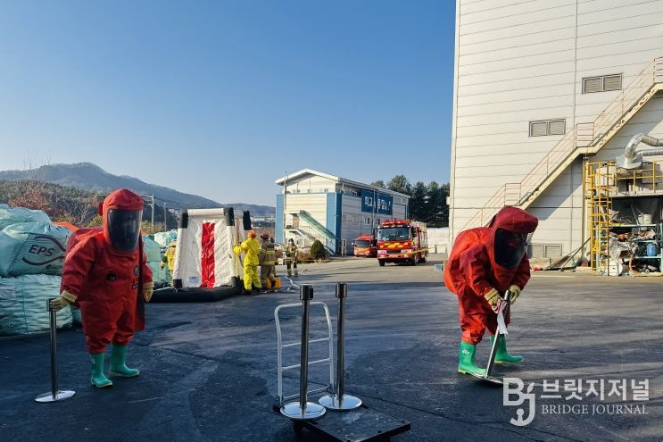 또한 훈련 종료 후 공장 시설 관계자들과 함께 공장 내부 구조를 확인하고 화재 진압 대원들을 대상으로 취급 중인 유해화학물질 특성과 취급 시 주의사항을 전달했다.