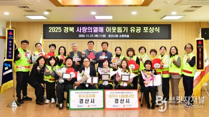 브릿지저널 정보영 기자 | 경산시는 27일 시청 소회의실에서 개최된 ‘2025 경북 사랑의열매 이웃돕기 유공 포상식’에서 2년 연속 지자체 부문 우수상을 수상했다.