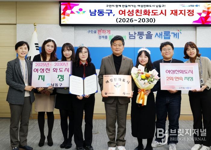 브릿지저널 김경미 기자 | 인천시 남동구는 성평등가족부가 주관한 ‘2025년 여성친화도시’에 선정됐다고 28일 밝혔다.