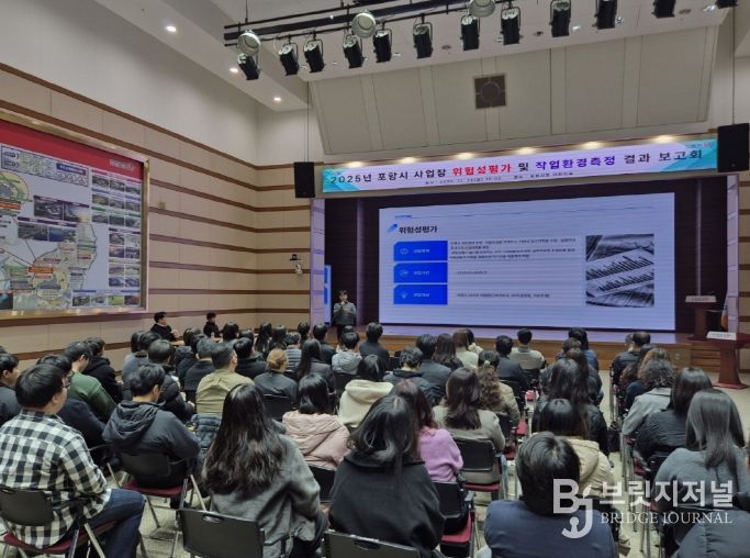 브릿지저널 정보영 기자 | 포항시는 28일 시청 대회의실에서 시 직영 사업장의 관리감독자와 사업 담당자 등 100여 명이 모인 가운데 ‘2025년 포항시 사업장 위험성평가 컨설팅 및 작업환경측정 용역 결과 보고회’를 개최했다.