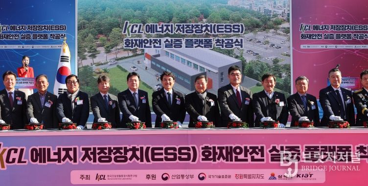 브릿지저널 윤나영 기자 | 강원특별자치도는 11월 28일 오전 11시 삼척시 소방방재산업특구에서 ‘ESS 화재안전 실증 플랫폼’착공식을 개최하고 재생에너지·AI 시대 필수 인프라인 ESS의 실화재 기반 원스톱 검증 체계를 구축한다고 밝혔다.