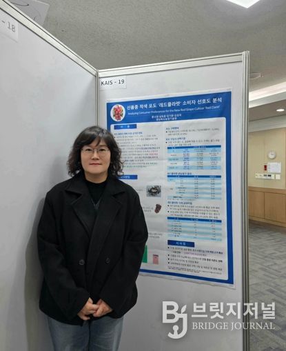 브릿지저널 정보영 기자 | 경상북도농업기술원은 21일 개최된 한국산학기술학회 학술대회에서 홍나경 박사가 ‘신품종 적색 포도 ‘레드클라렛’ 소비자 선호도 분석 연구’로 우수 논문상을 받았다.