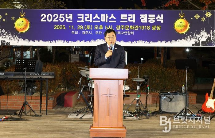 브릿지저널 정보영 기자 | 경주시는 크리스마스 시즌을 맞아 겨울을 밝히는 희망의 메시지를 시민과 함께 나누기 위해 지난 29일 경주문화관1918 광장에서 ‘2025 성탄절 트리 점등식’을 개최했다.