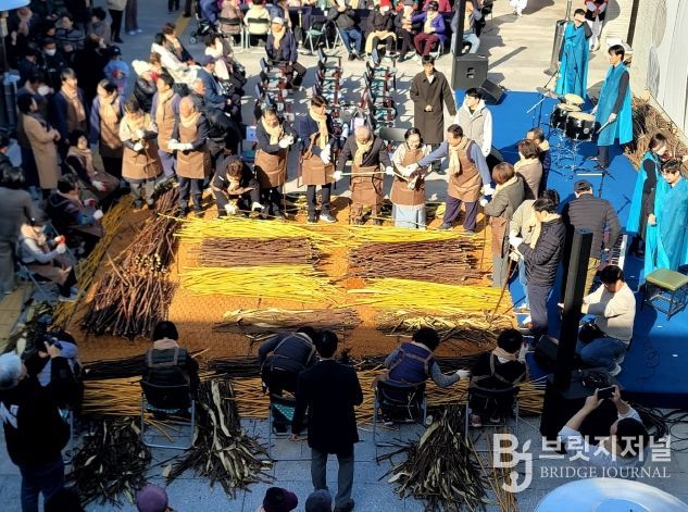 브릿지저널 윤나영 기자 | 과거 ‘한지골’로 불렸던 전주한지의 주생산지인 전주시 흑석골에서 한지의 주원료인 닥나무를 찌고 껍질을 벗기는 닥무지가 재현됐다.