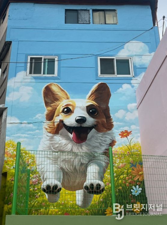 오랫동안 방치된 폐가로 인해 어둡고 불안한 환경이 지속되고 있는 장소를 웰시코기가 밝게 뛰어노는 모습으로 벽면에 생동감 있게 표현하여 지나가는 주민들이 자연스럽게 미소 지을 수 있는 친근하고 활기찬 공간으로 탈바꿈시켰다.