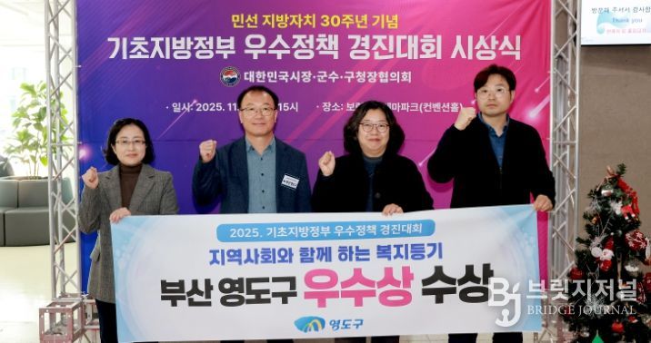 브릿지저널 윤나영 기자 | 부산시 영도구는 지난 11월 26일, 2025년 기초지방정부 우수정책 경진대회에서 ‘지역사회와 함께하는 영도형 복지등기사업’ 으로 우수상을 수상했다.