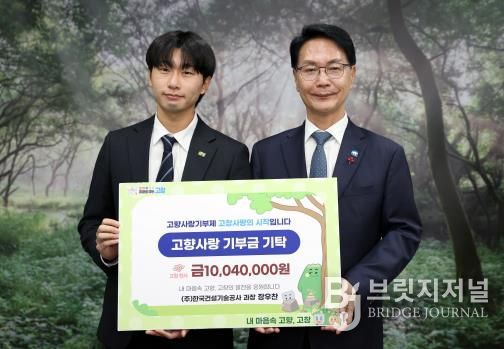 브릿지저널 윤나영 기자 | 한국건설기술공사 장우찬 과장이 2일 고창군청을 찾아 고향사랑기부제로 1004만원을 기부했다.