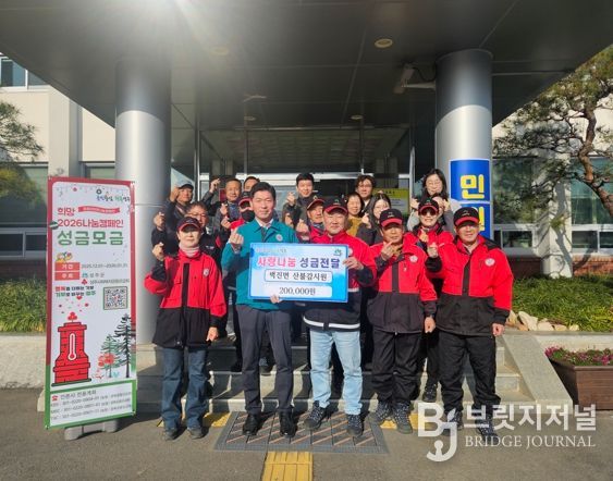 브릿지저널 정보영 기자 | 성주군은 12월 2일 찾아가는 희망2026 나눔캠페인 출범식에 사랑의열매 나눔봉사단원들이 관내 사회복지시설․지역 금융기관 및 마트․어린이집 원아들을 직접 방문해 기부의 첫걸음을 디뎠다.