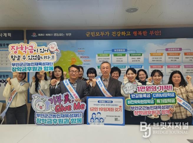 부안군근농인재육성재단 관계자는 “보건소 직원들의 자발적인 캠페인 동참과 장학기금 후원 홍보에 감사하다”며 “군민 참여형 기부문화 확산과 지역 인재 양성을 위해 최선을 다하겠다”고 밝혔다.