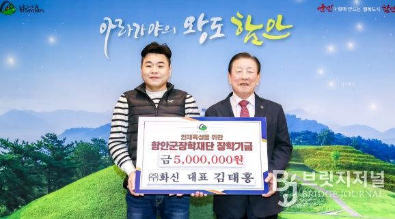 브릿지저널 김경미 기자 | 함안군장학재단은 지난 3일 ㈜화신(대표 김태홍)에서 장학기금 500만 원을 기탁했다고 밝혔다.