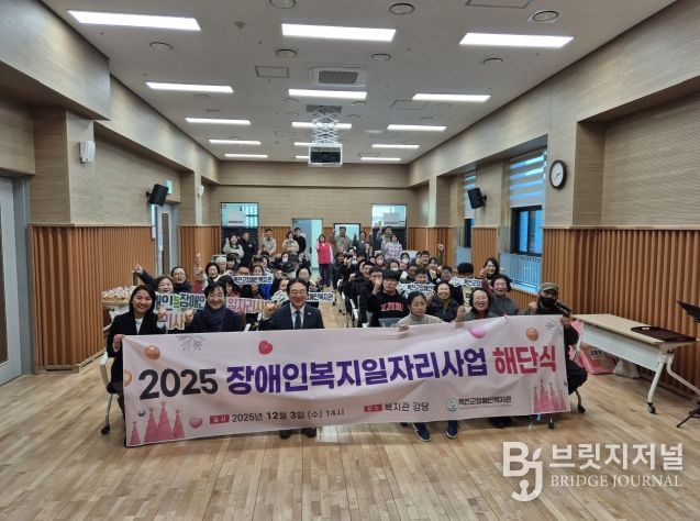 브릿지저널 김경미 기자 | 옥천군장애인복지관이 3일 일자리 참여자의 한 해 동안의 노고를 격려하고 근로 의욕을 높이기 위해 ‘2025년도 장애인복지일자리사업 해단식’을 개최했다.