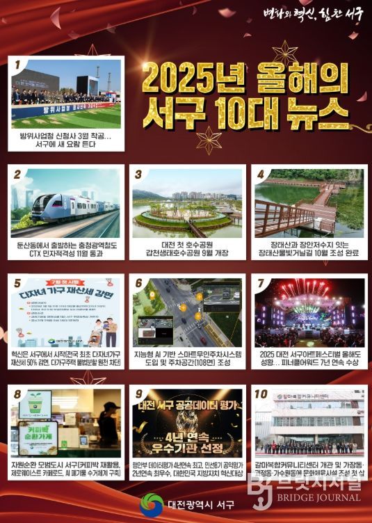 브릿지저널 정보영 기자 | 2025년 대전 서구 10대 뉴스로 교통·공원 분야 정책이 주목받은 것으로 나타났다.