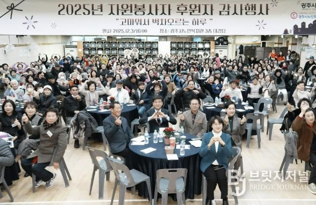 브릿지저널 김경미 기자 | 광주시노인복지관은 지난 3일 복지관 3층 대강당에서 ‘2025 자원봉사자·후원자 감사 행사, “고마워서 벅차오르는 하루’를 성황리에 개최했다.
