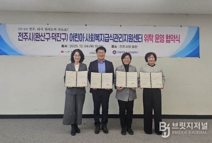 브릿지저널 윤나영 기자 | 전주시는 4일 전주대학교 산학협력단, 전북대학교 산학협력단과 각각 ‘전주시 어린이·사회복지급식관리지원센터 위탁운영 협약’을 체결했다.