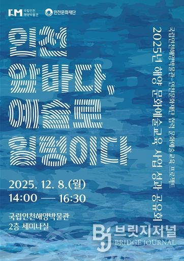 브릿지저널 김경미 기자 | (재)인천문화재단은 국립인천해양박물관과 협력하여 추진한 해양 문화예술교육 프로젝트 성과공유회를 오는 12월 8일 14:00부터 16:30분까지 국립인천해양박물관 2층 세미나실에서 개최한다.