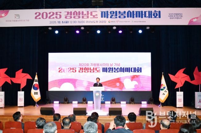 브릿지저널 김경미 기자 | 경상남도의회 최학범 의장은 12월 5일, 도청에서 열린 ‘2025 경상남도 자원봉사자대회’에 참석해 자원봉사자들을 격려하고 유공자 수상자들에게 축하를 전했다.