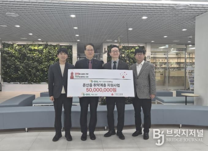 브릿지저널 윤나영 기자 | S-OIL 울산공장이 5일 울주군 온산읍 행정복지센터에서 이준호 온산읍장, 박성훈 S-OIL 상무, 박광철 온산읍 지역사회보장협의체 위원장, 양호영 울산사회복지공동모금회 사무처장 등이 참석한 가운데 온산읍 취약계층 지원금 5천만원을 전달했다.