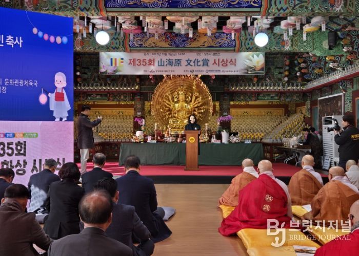 브릿지저널 김경미 기자 | 창원특례시는 제35회 산해원 문화상 시상식이 5일 성주사 설법전에서 엄숙하면서도 따뜻한 분위기 속에 열렸다고 밝혔다.