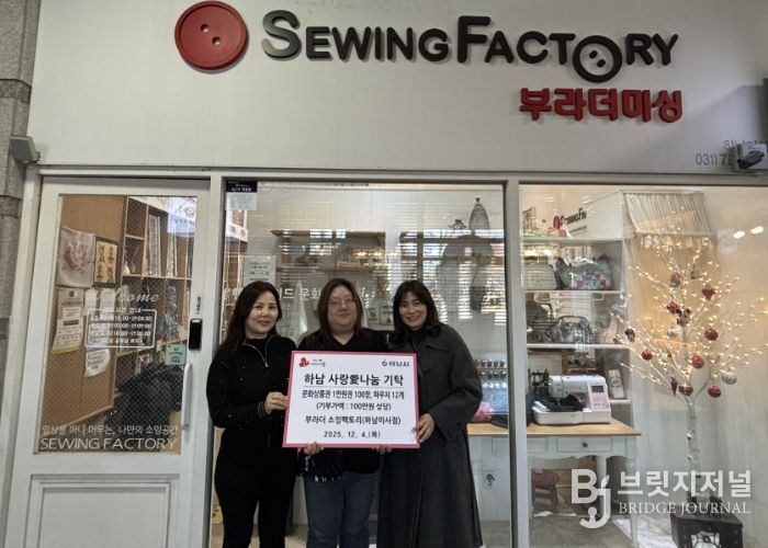 브릿지저널 김경미 기자 | 하남시 드림스타트는 12월 4일 부라더 소잉팩토리 하남미사점으로부터 문화상품권 100만원과 수제 생리대 파우치 12개를 전달받았다고 밝혔다.