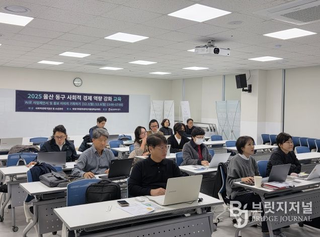 브릿지저널 윤나영 기자 | 울산 동구는 12월 8일 오후 1시 30분 화정가족문화센터에서 동구지역 사회적경제 기업 관계자 10여명을 대상으로 ‘2025년 사회적경제 역량강화 교육을 개최했다.