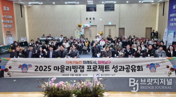 브릿지저널 윤나영 기자 | 울산 남구는 8일 남구청 6층 대강당에서 ‘2025년 마을리빙랩 프로젝트’ 성과공유회를 열고 활동한 13개 프로젝트 팀을 격려하며 활동을 공유하는 시간을 가졌다.