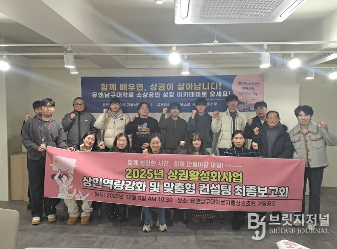 브릿지저널 윤나영 기자 | 부산 남구 유엔남구대학로자율상권조합이 추진한 2025년 상권활성화 사업 '상인역량강화 및 맞춤형 컨설팅'이 지난 12월 5일, 용소랑(상권활성화 거점공간)에서 열린 최종 보고회를 끝으로 올해 모든 일정을 성공적으로 마무리했다.