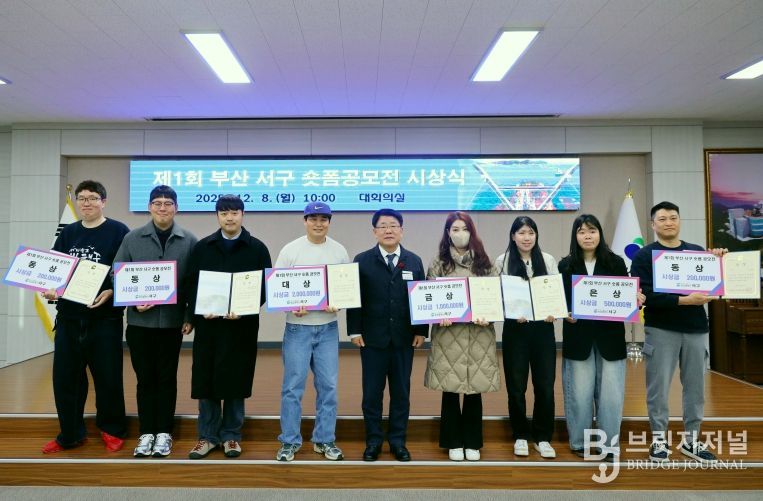 브릿지저널 윤나영 기자 | 부산 서구는 지난 8일 오전 10시 구청 대회의실에서 ‘제1회 부산 서구 숏폼 공모전’ 시상식을 갖고 대상 1명을 비롯해 금상(1명), 은상(2팀), 동상(5팀) 등 총 9명(팀)의 수상자에게 상장과 상금을 수여했다.