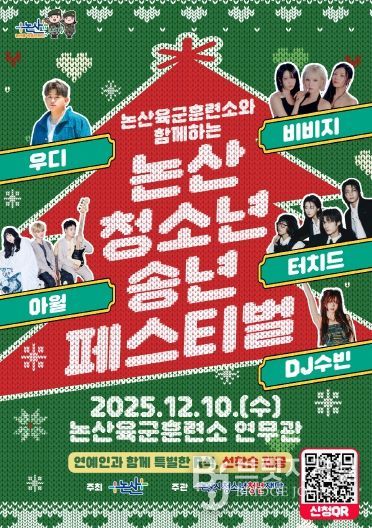 ‘청소년 송년페스티벌’은 지역 청소년들이 친구와 가족, 동료와 함께 한 해를 돌아보고 다음 해의 출발을 다짐하는 자리로, 논산시를 대표하는 연말 청소년 축제다. 올해 행사는 국방친화도시의 정체성을 살려 다시 육군훈련소 연무관에서 열리며, 관내 청소년과 군 장병·가족, 일반 시민 등이 함께 참여하는 열린 축제로 진행된다.