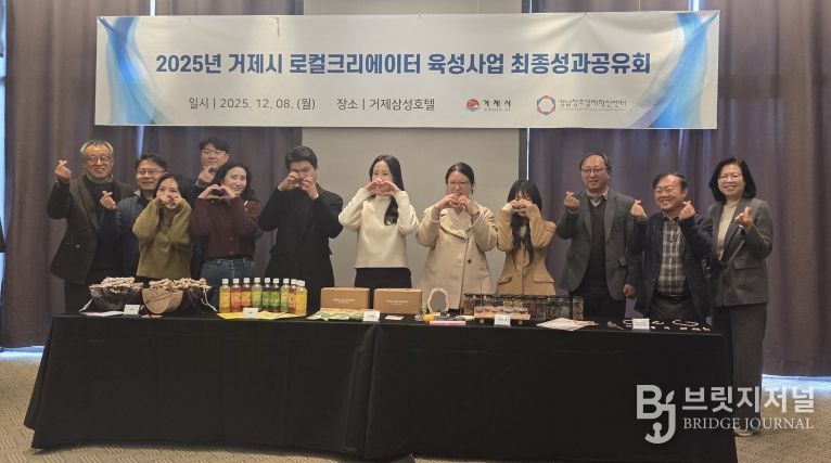 브릿지저널 김경미 기자 | 거제시는 지난 8일, 거제삼성호텔에서 ‘2025년 거제시 로컬크리에이터 육성 사업' 최종 성과공유회를 개최했다. 이번 행사에는 2025년 창업지원 대상기업 5팀, 평가위원, 손순희 민생경제과장, (재)창조경제혁신센터 정관주 본부장을 비롯한 관계자 35명이 참석해 창업자들의 사업 수행 상황을 최종 점검했다.
