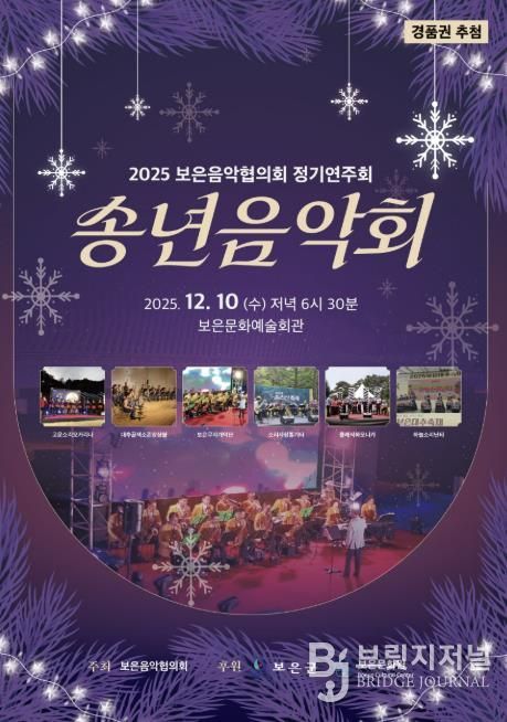 브릿지저널 김경미 기자 | 보은음악협의회가 주최하는 송년음악회가 오는 10일 오후 6시 30분 보은문화예술회관에서 열린다.