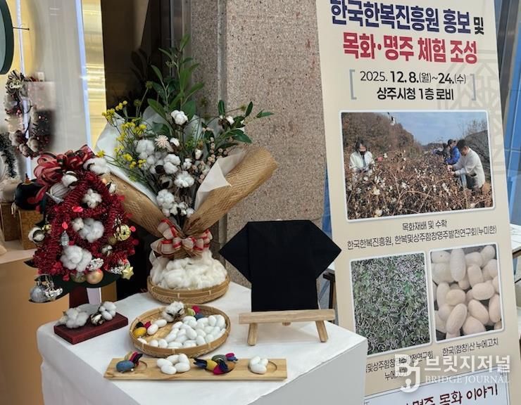 브릿지저널 정보영 기자 | 한국한복진흥원 입주기업 누미한은 12월 8일부터 12월 24일까지 진흥원 내 목화밭에서 재배한 목화솜과 명주천을 활용한 체험형 전시를 상주시청 로비에서 진행한다.