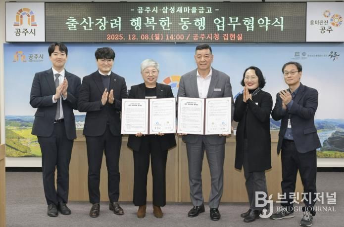 브릿지저널 정보영 기자 | 공주시는 지난 8일 시청 집현실에서 삼성새마을금고와 ‘출산장려 행복한 동행’ 업무협약을 체결했다고 밝혔다.