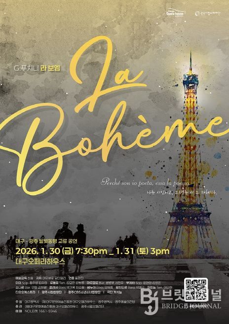 브릿지저널 김진석 기자 | 대구문화예술진흥원 대구오페라하우스는 2026 첫 공연으로 선보이는 광주시립오페라단 제작의 푸치니 오페라 '라 보엠'을 30% 할인된 금액으로 만날 수 있는 조기예매(얼리버드)를 12월 10일부터 31일까지 진행한다.
