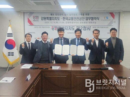 브릿지저널 윤나영 기자 | 강원특별자치도는 12월 9일 제2청사 글로벌본부에서 한국교통안전공단(이하 “공단”)과 궤도안전관리 상시 협력체계 구축을 위한 업무협약을 체결했다.