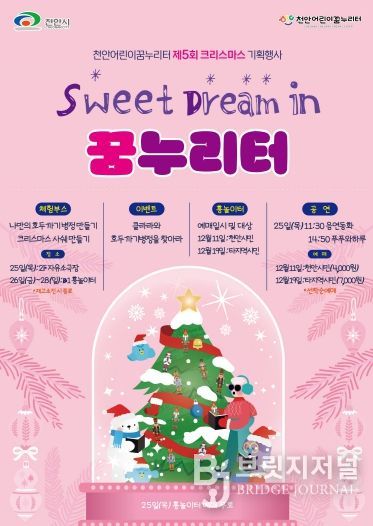 브릿지저널 정보영 기자 | 천안어린이꿈누리터(관장 조삼혁)는 오는 12월 25일부터 28일까지 제5회 크리스마스 기획행사‘Sweet Dream in 꿈누리터’를 진행한다고 밝혔다.